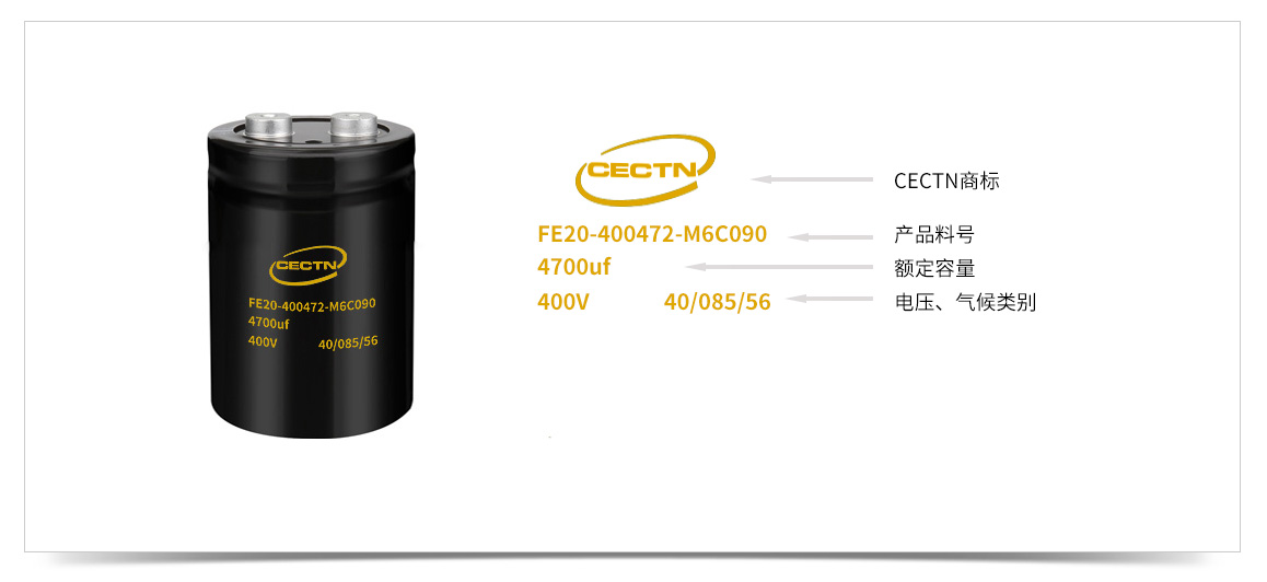 ? ? ? ? 铝电解电容的料号又两个部分组成,上面是CECTN商标,下面为电解电容型号,包含订购代码、电压、容量、温度、寿命、安装方式等信息。详细了解请点击进入《k8凯发铝电解电容料号说明》页面。
