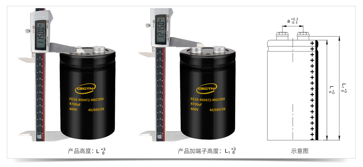 400V4700uF螺栓型铝电解电容高度为115mm,加上端子高度为121.5mm。